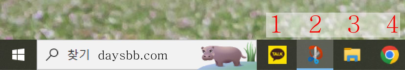 예를 들어 내가 메모장을 이용해서 글을 쓰고 있는데 빠르게 인터넷 창을 열어 추가적인 내용을 검색하고 싶다면 해당 아이콘을 사용하면 되겠죠? 빠른실행 아이콘들은 검색창 오른쪽부터 순서대로 1, 2, 3, 4로 시작되며 윈도우 버튼과 숫자키를 눌러주시면 빠르게 실행됩니다.